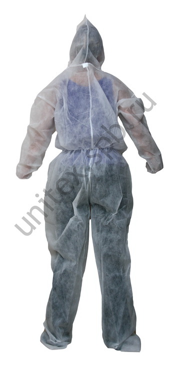 Комбинезон изготовлен из нетканого полипропилена (спанбонда), не стесняет движений, может быть использован как в медицинских учреждениях (для проведения профмедосмотров, диспансеризации и т.д.), так и в учреждениях общественного питания.