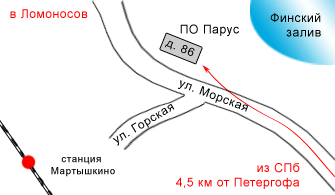 3. Склад в Мартышкино:Санкт-Петербург, Ломоносовский р-н, Мартышкино, ул. Морская, д. 86, здание ПО "Парус"