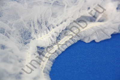 Шапочка "шарлотта" изготовлена из нетканого гипоаллергенного полипропилена, обладает хорошими воздухопропускными свойствами, позволяет коже головы дышать.